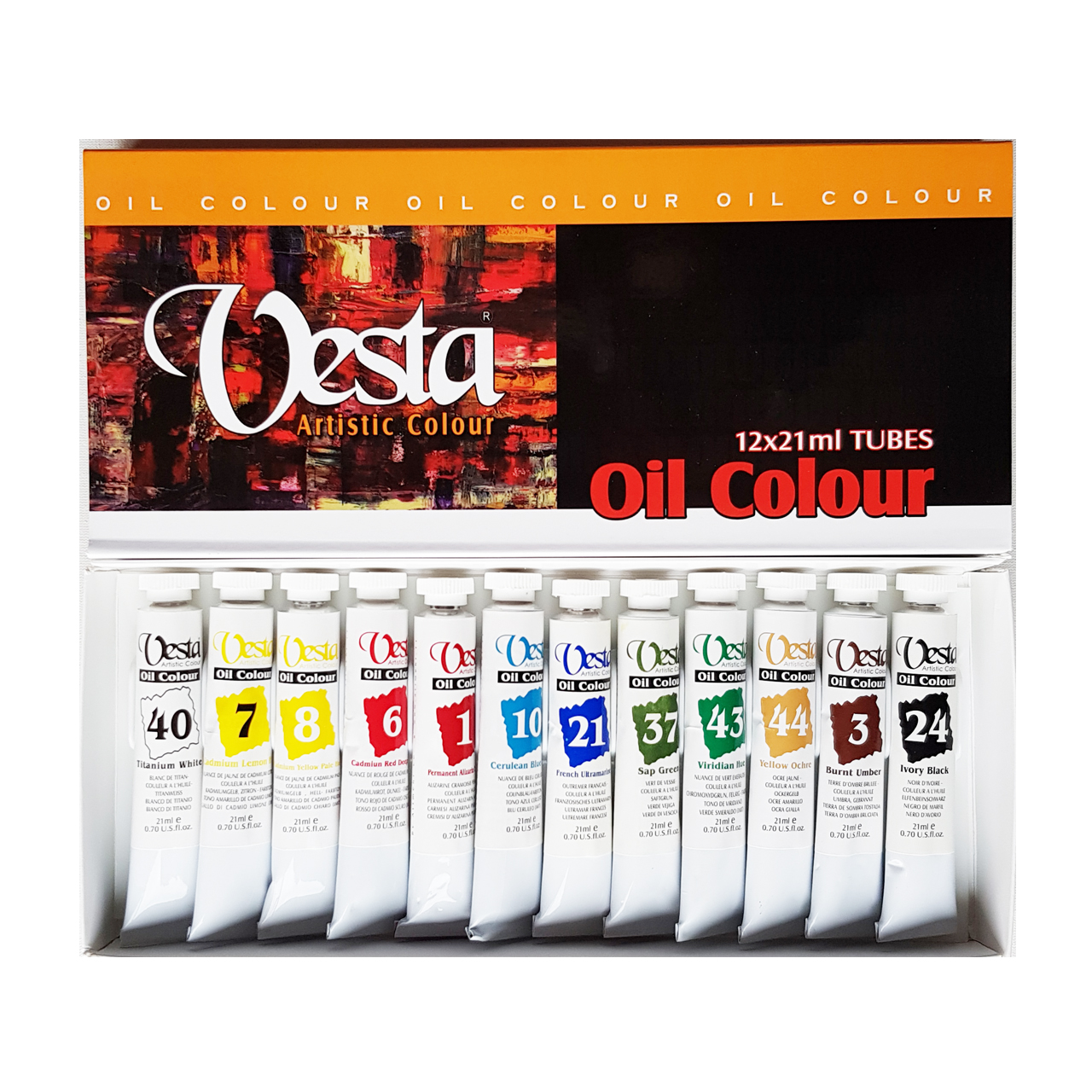 12 عدد رنگ روغن وستا 21 میل رنگ های اصلی و پرکاربرد