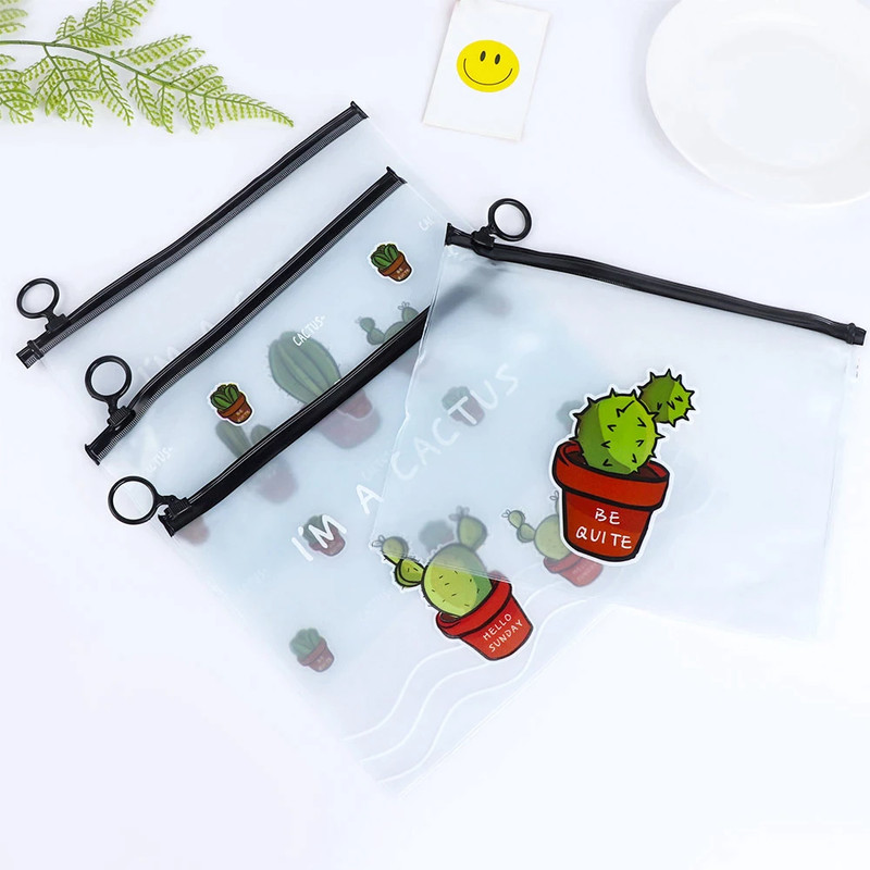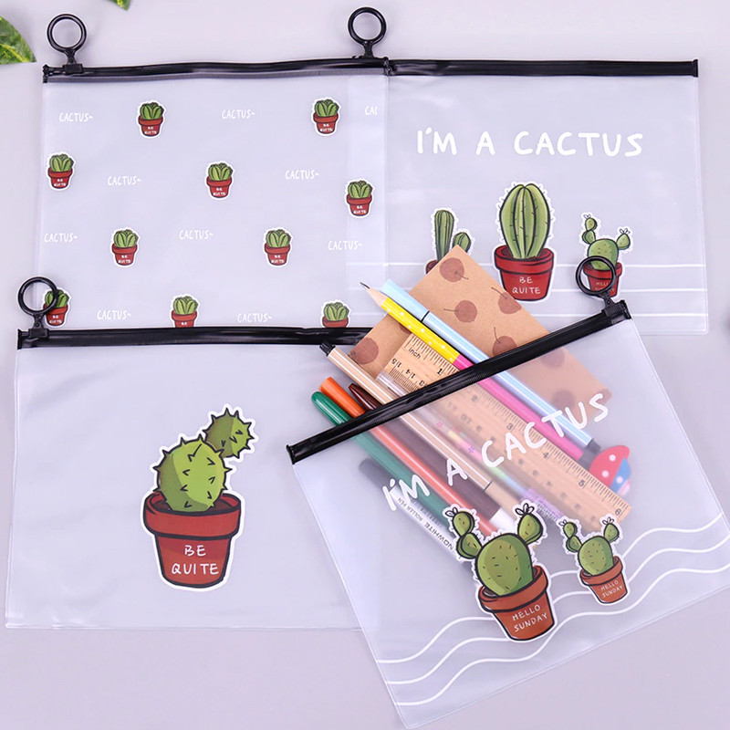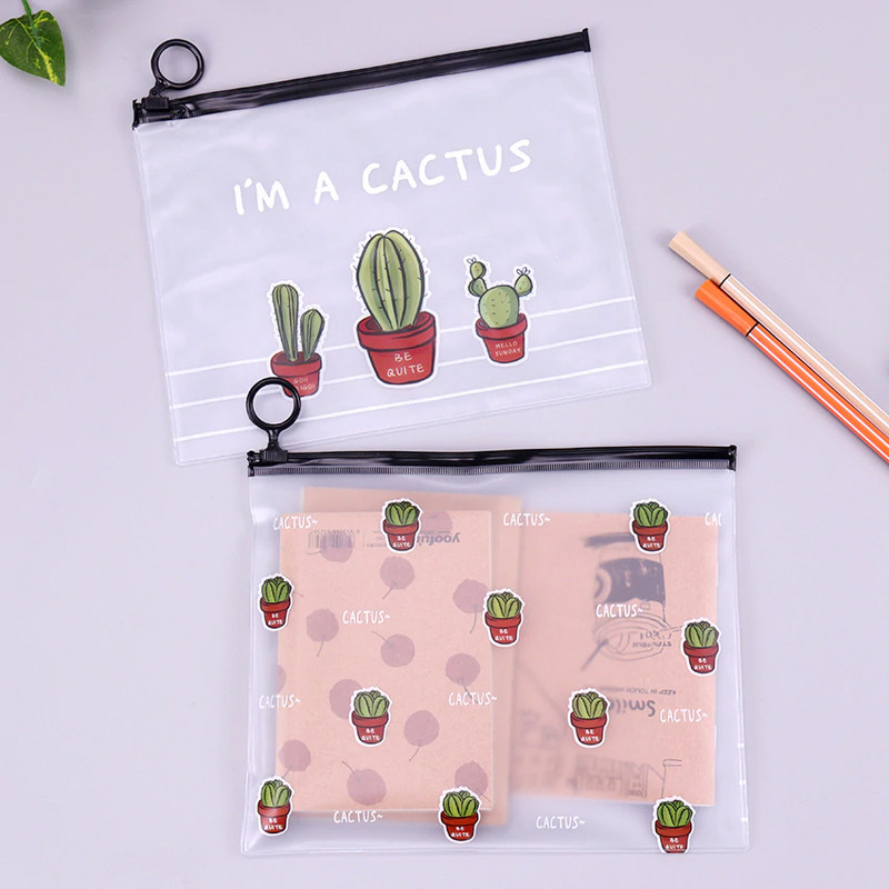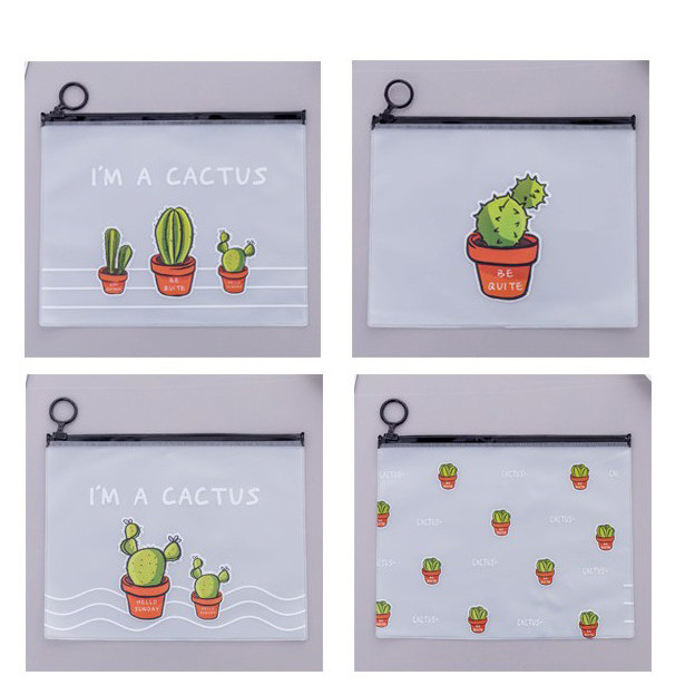 چهار عدد کاور پلاستیکی زیپ دار طرح کاکتوس طرح: چهار طرح متنوع همانند تصویر ابعاد: 17x21 سانتی متر مناسب استفاده بعنوان جامدادی،کیف لوازم آرایش،کیف لوازم شنا و ...
